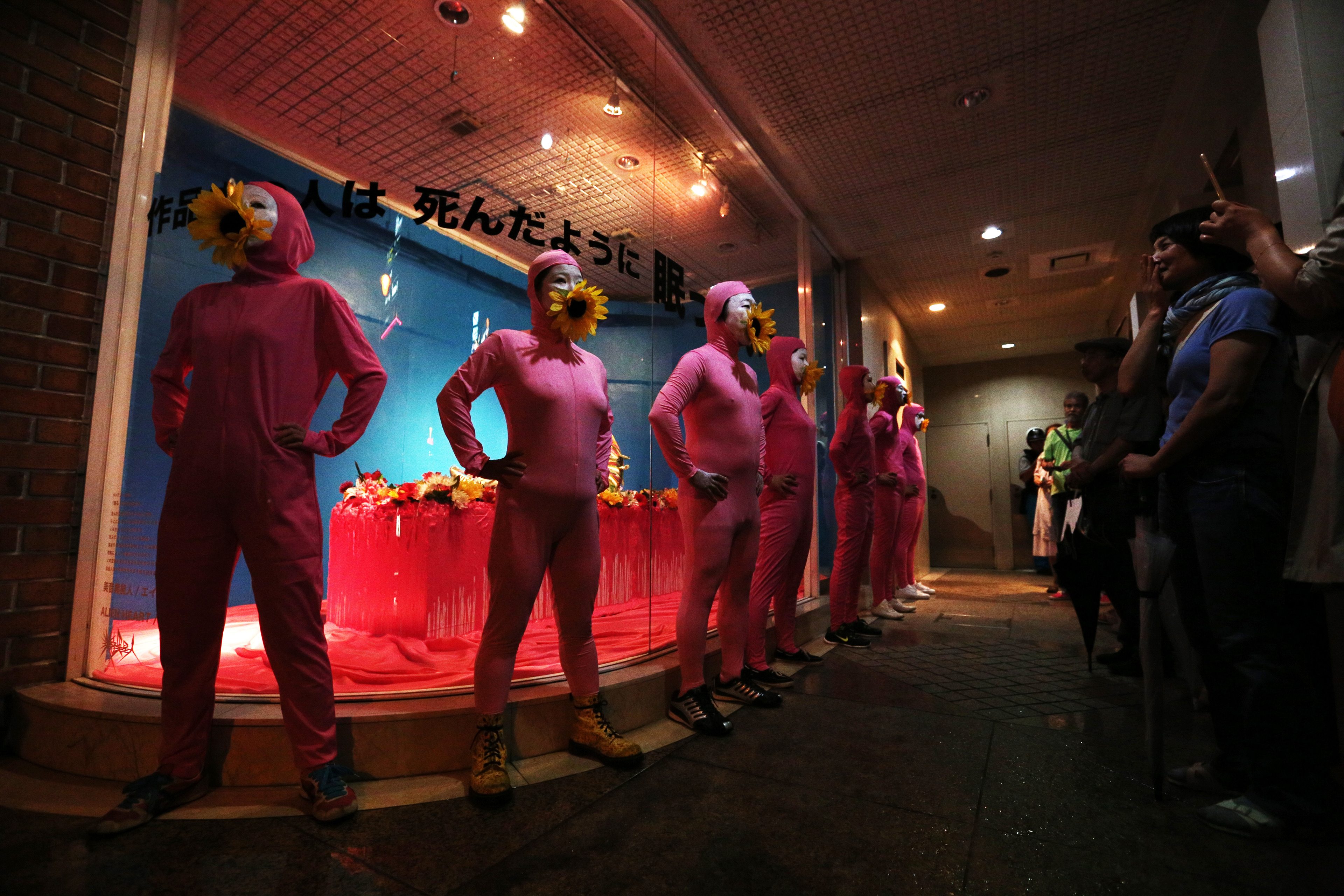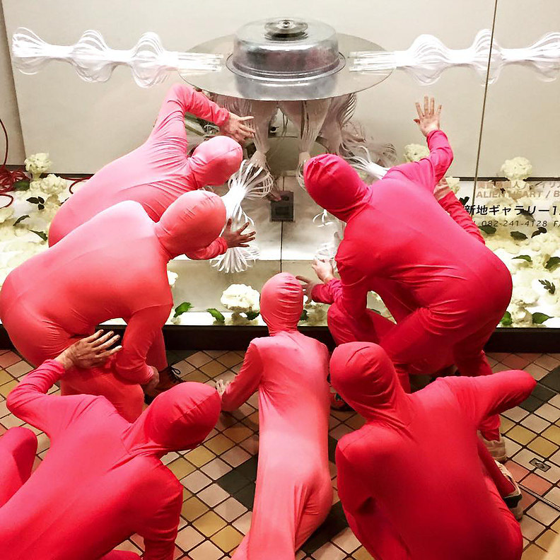 A clear blue sky and a beautiful flower field spread out as far as the eye can see. However, this is a place where humans cannot live. The fear that we cannot see with our own eyes lingers here. The aliens awaken from their slumber and go on an Alien Walking to deliver their message. The tragic past of Hiroshima and Nagasaki, as well as the Fukushima disaster, are messages for the future.
